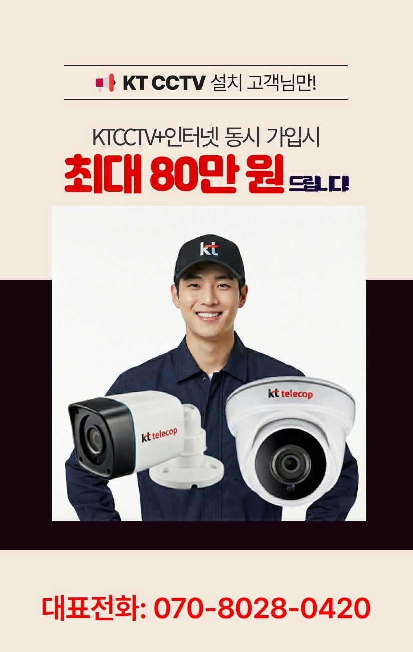 펜션 운영을 준비하거나 전원주택으로 이사하는 시기에는 가전제품 구매와 조경, 인테리어 비용으로 이미 수천만 원의 지출이 발생한 상태인 경우가 많습니다. 이때 가장 추천드리는 방법이 바로 KT 솔루션입니다. 경기도 가평군 북면 CCTV 설치 시 이 방식을 선택하면 가장 먼저 체감하는 혜택은 초기 설치 비용이 ‘0원’이라는 점입니다. 당장 내 주머니에서 큰 목돈이 나가지 않고도 국내에서 가장 성능이 검증된 최신형 카메라 인프라를 즉시 구축할 수 있다는 것은 가계 및 사업 운영 면에서 압도적인 유리함을 제공합니다.