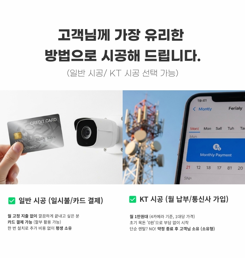 신뢰할 수 있는 경기도 가평군 호명리 CCTV 설치 결과물을 원하신다면, 단순히 낮은 가격만 강조하는 곳보다 시공 과정의 디테일과 사용되는 자재의 스펙을 꼼꼼히 따져보시기 바랍니다. 저희는 과장된 기술 설명 대신 오직 정석 시공과 결과물로 그 가치를 증명합니다. 호명리의 평온한 전원생활을 지키고 고객님의 소중한 자산을 보호하는 가장 확실한 선택, 전문가의 손길로 완성되는 고품격 보안 솔루션을 지금 경험해 보시기 바랍니다.